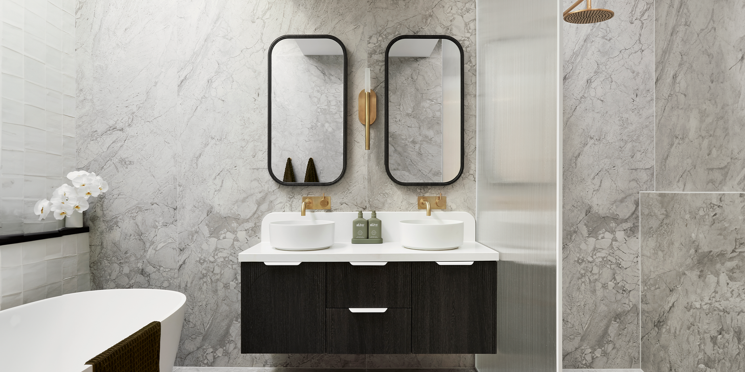 Watch for the reveal of the Upstairs Living, Study, Upper Powder Rooms & Exterior areas